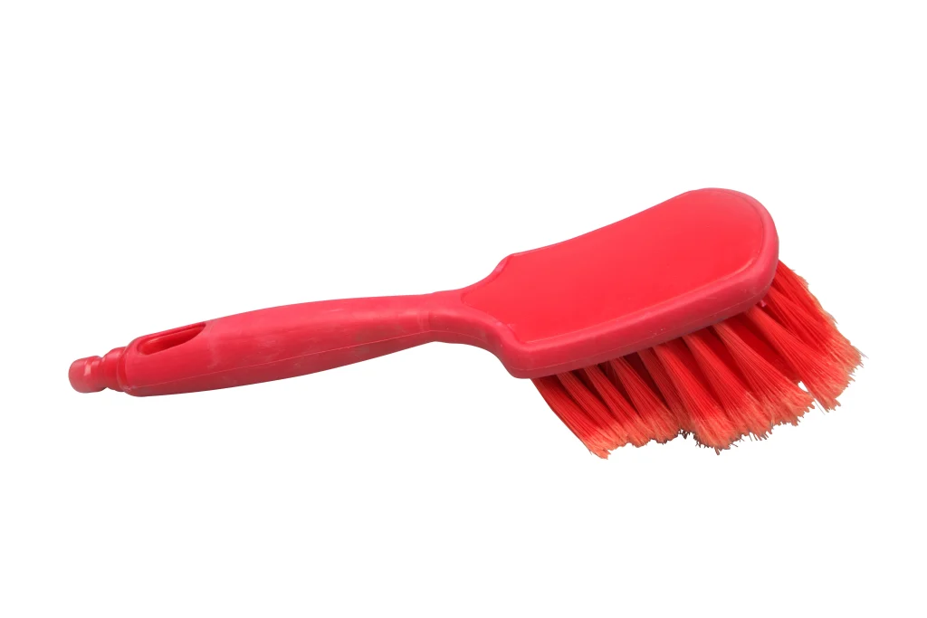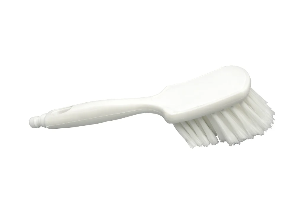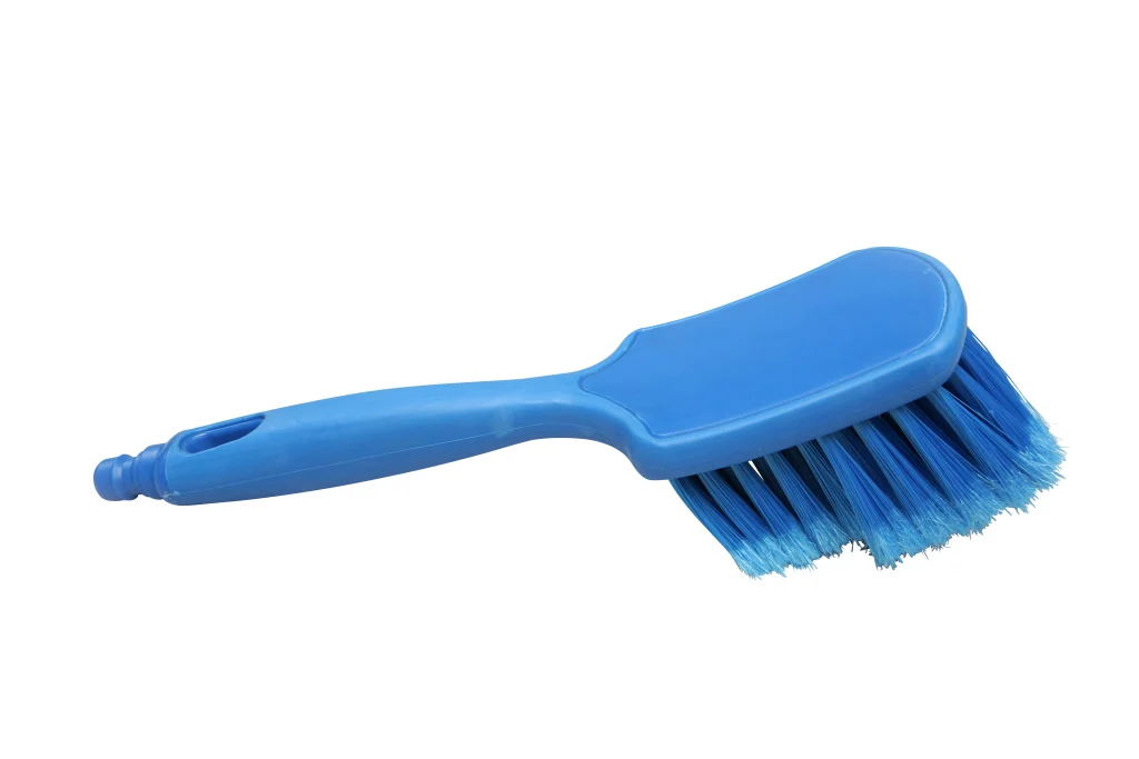 Cepillo con mango de polipropileno y paso de agua que permite flujo controlado desde la base de la escobilla. Tiene conexión de ½ pulgada. Cerdas suaves para no dañar superficies y aumentar la retención de líquidos en el lavado. Por ser despuntado no cumple certificación PHB, pero tiene alto estándar de calidad. Esterilizable a 134 °C.