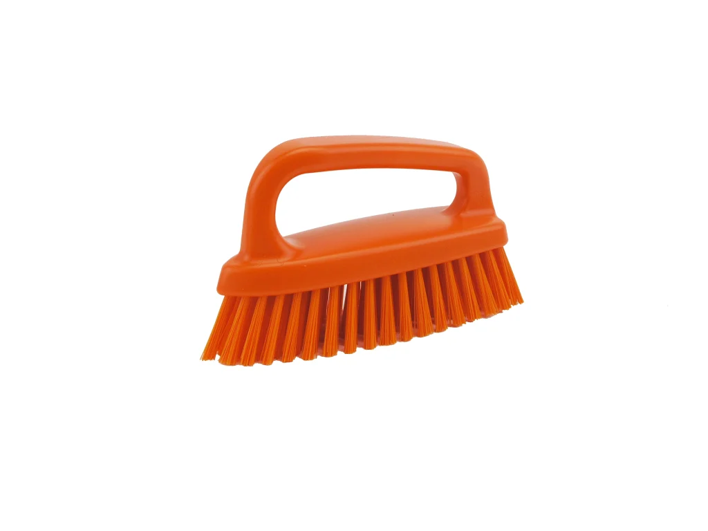 Cepillo con empuñadura para uso manual, diseñado para limpieza de superficies duras. Mango de polipropileno con diseño ergonómico permite limpieza efectiva y controlada, evitando el contacto directo de la mano con los filamentos. Uso recomendado hasta 80 °C. Esterilizable a 134 °C.