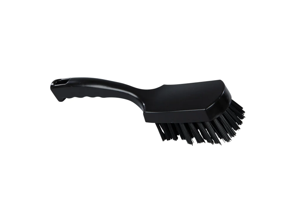 Cepillo panadero Resin Set con cerdas de rigidez media PBT 0.50 mm, de 275 x 70 mm, mango corto de polipropileno, recomendado para limpieza intensiva en equipamiento y superficies, enfocado en esquinas.