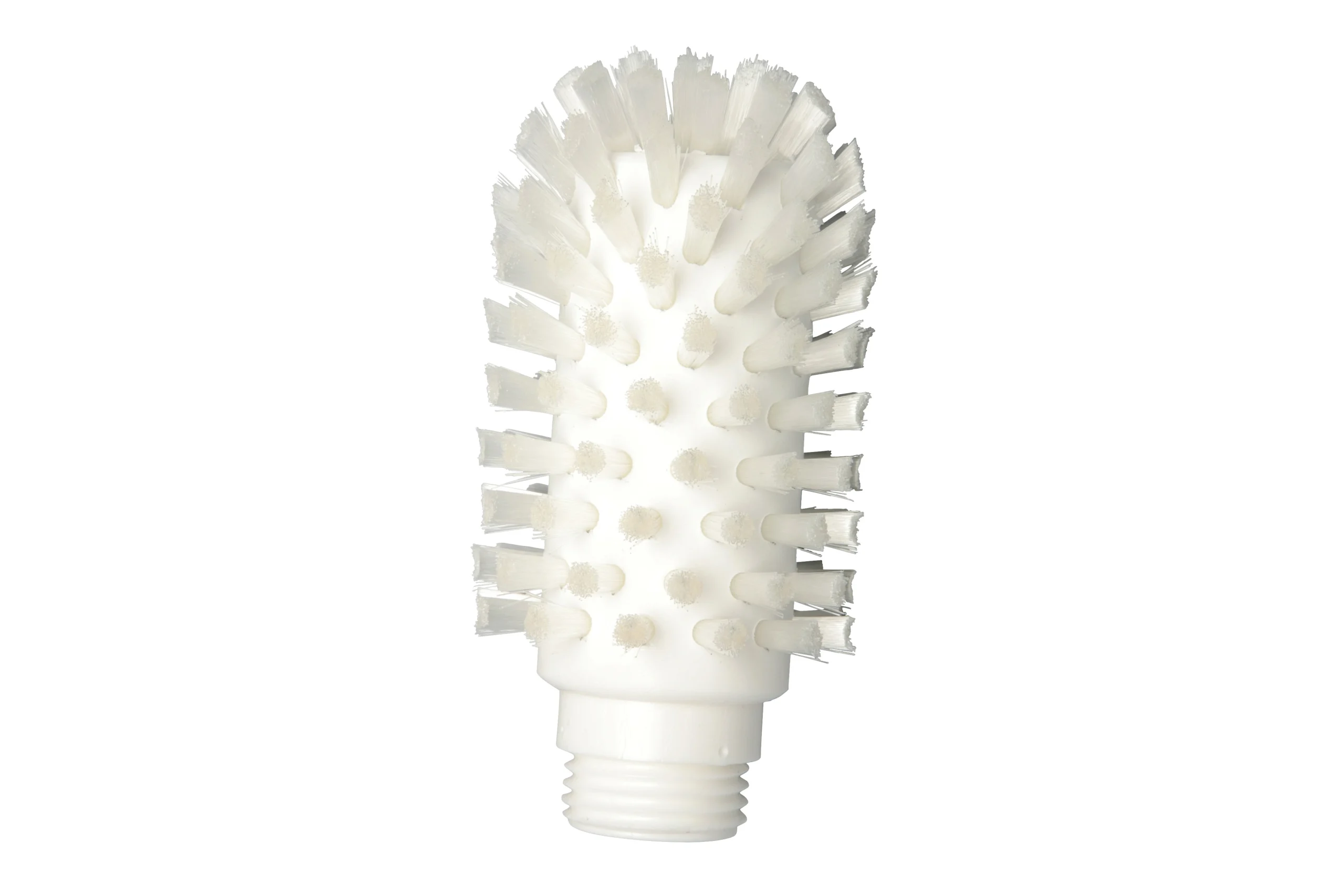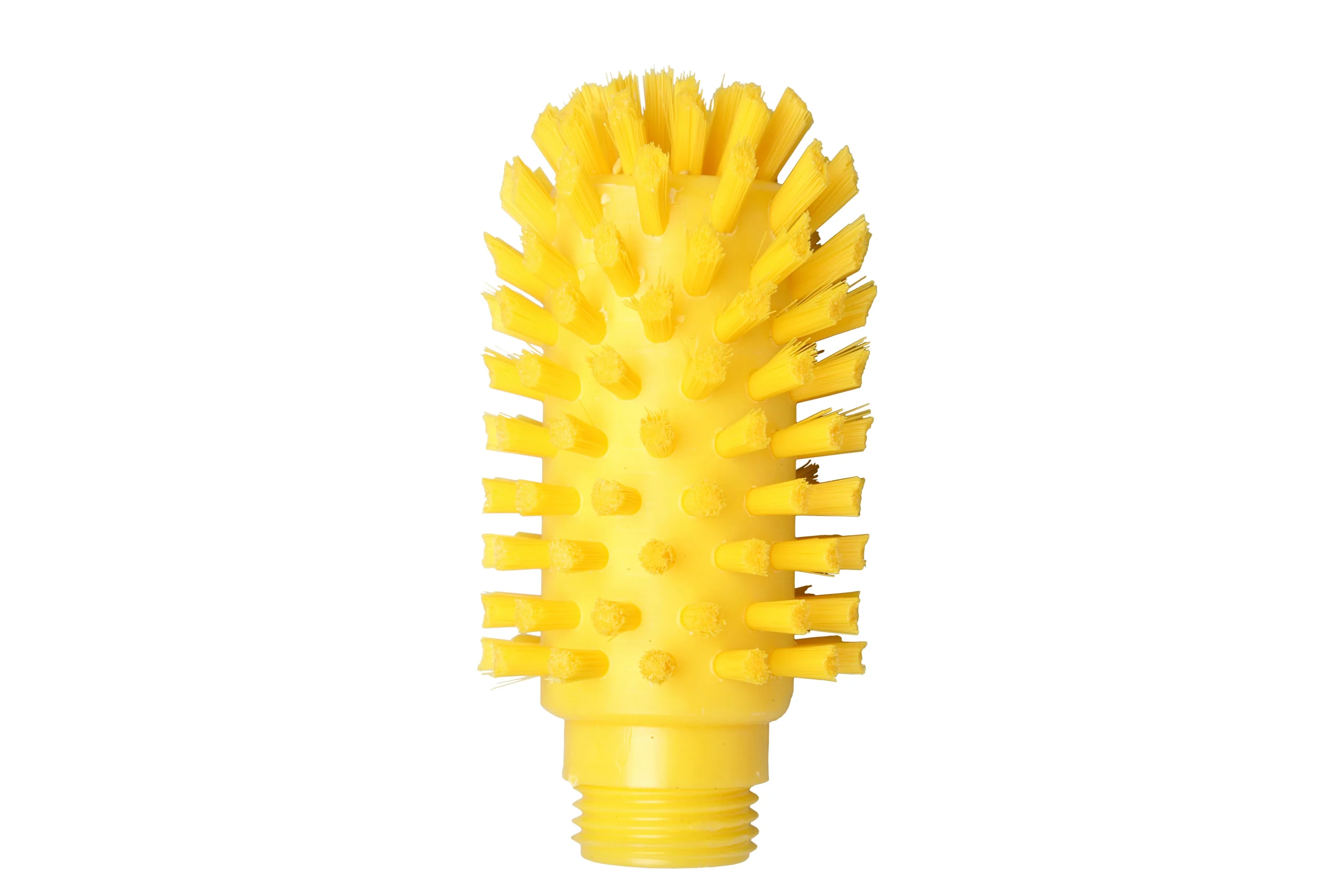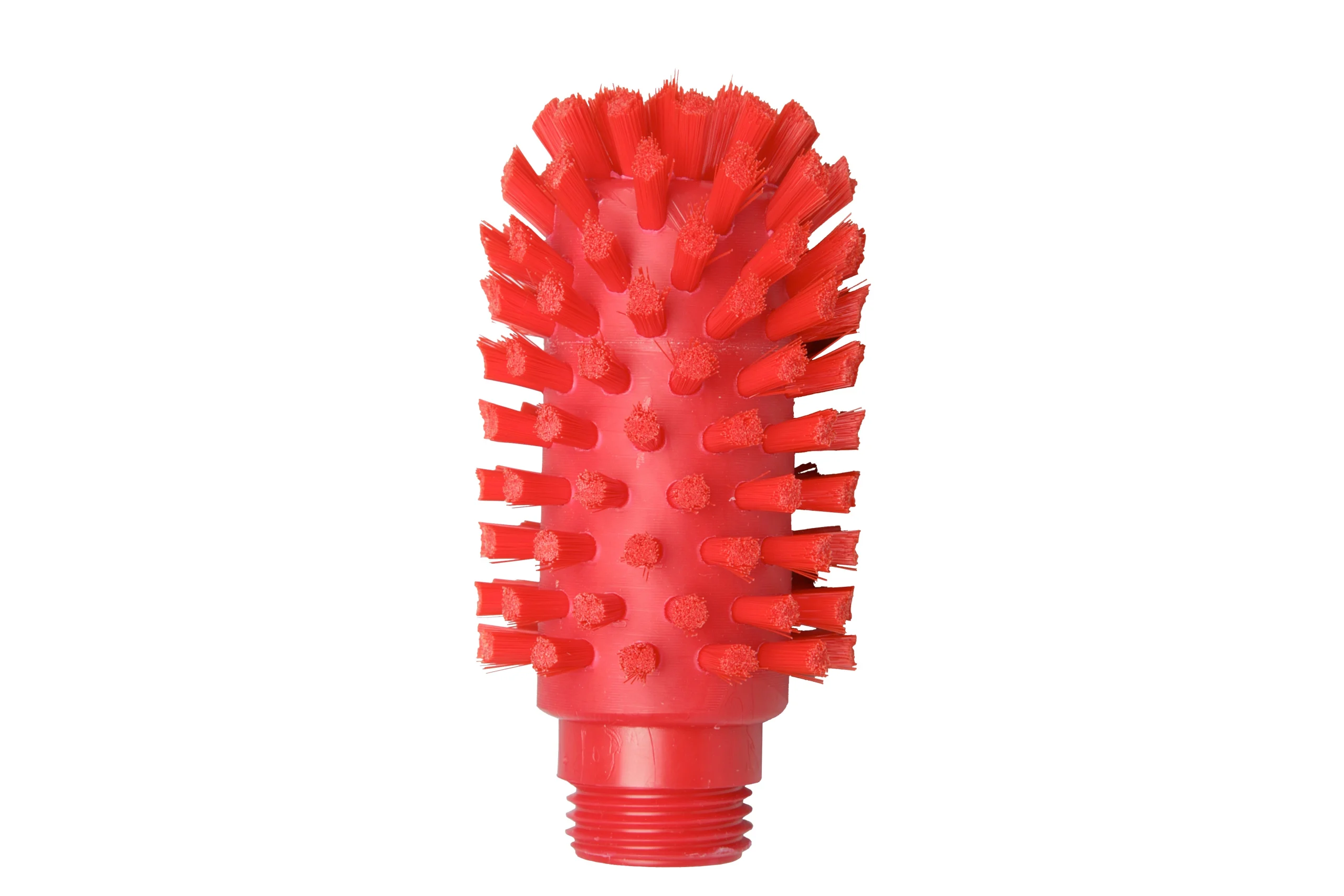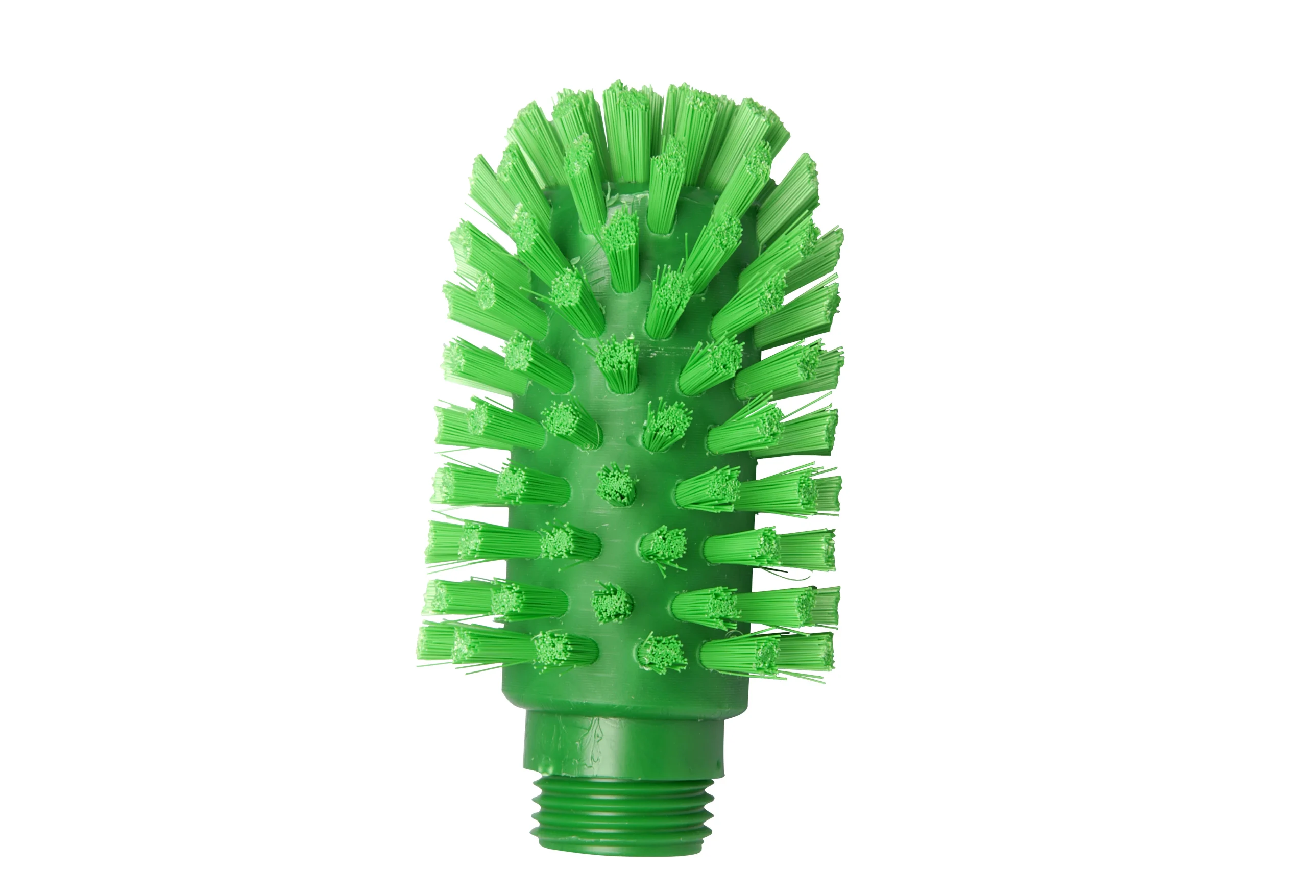 Cepillo cilíndrico para limpieza de tuberías, ø 63 x 95 x 120 mm, con cerdas de PBT 0.20 mm y 9 mm de altura. Compatible con mangos de rosca externa.