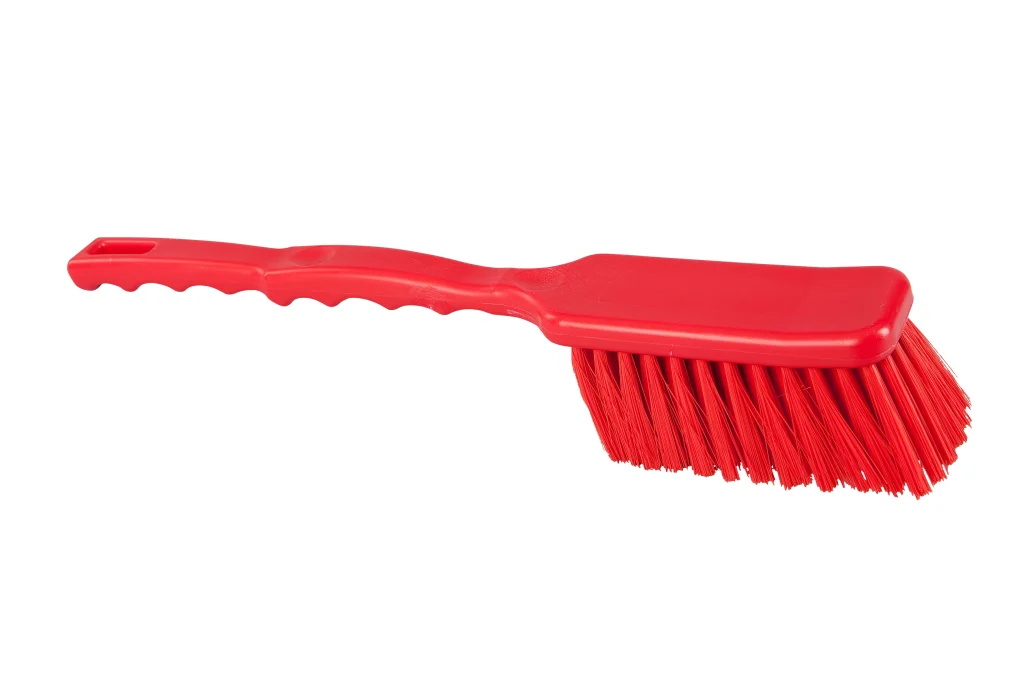 Cepillo con filamentos rígidos de poliéster PBT de 0.50 mm, perfecto para limpieza intensiva en equipamiento, pisos y muros. Su mango largo y diseño resistente ofrecen un manejo ergonómico y un alcance efectivo en áreas exigentes.
