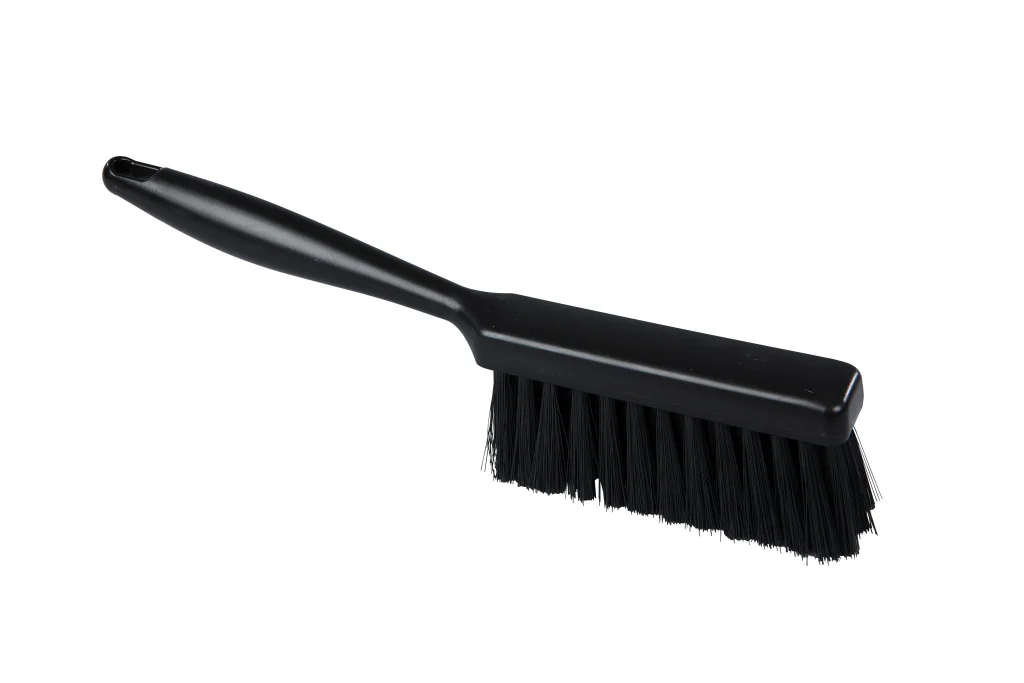 Cepillo panadero Resin Set con cerdas de rigidez media PBT 0.30 mm, de 340 x 35 mm, mango corto de polipropileno, ideal para limpieza detallada de material ligero como harina y polvo en superficies y equipos.