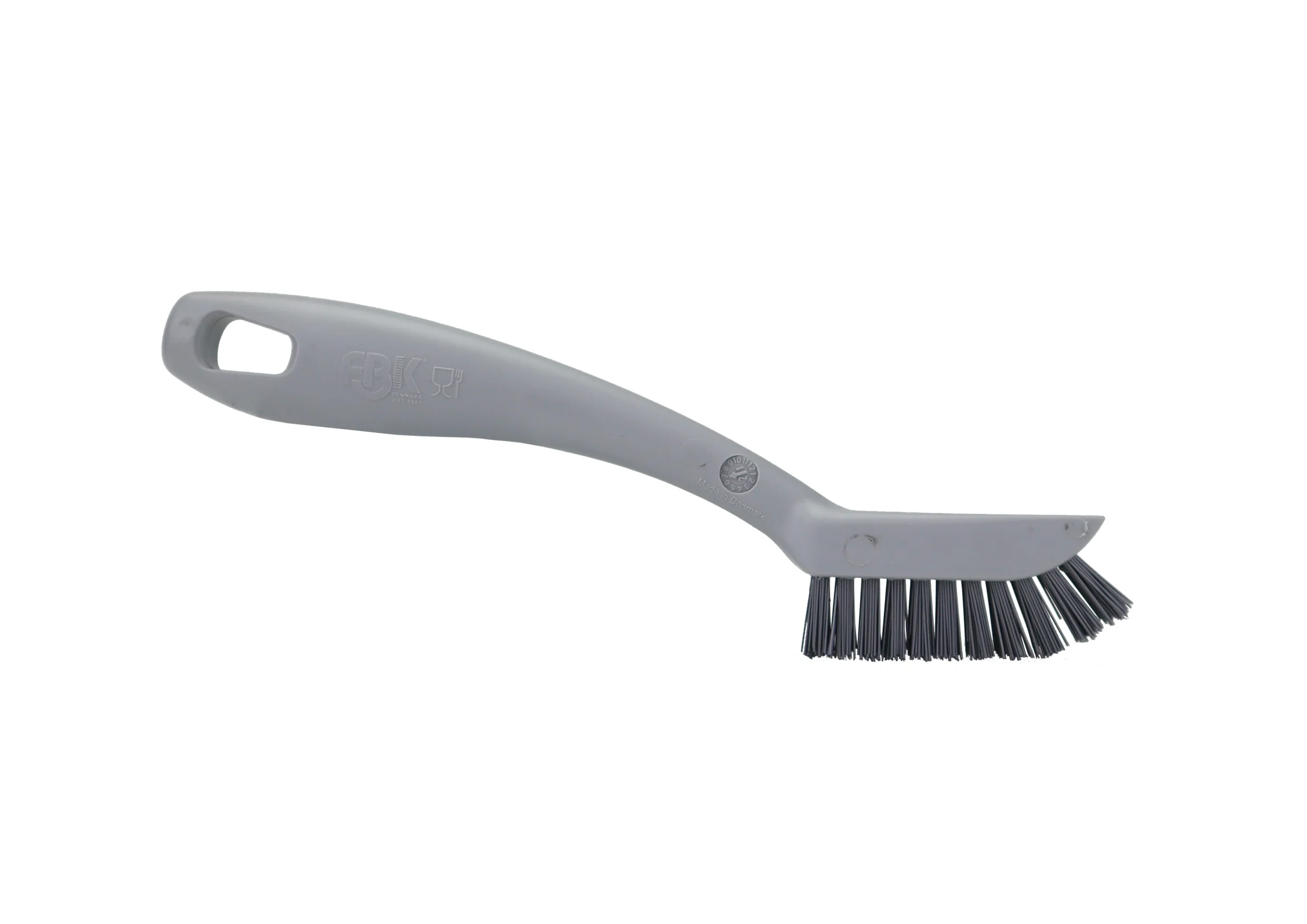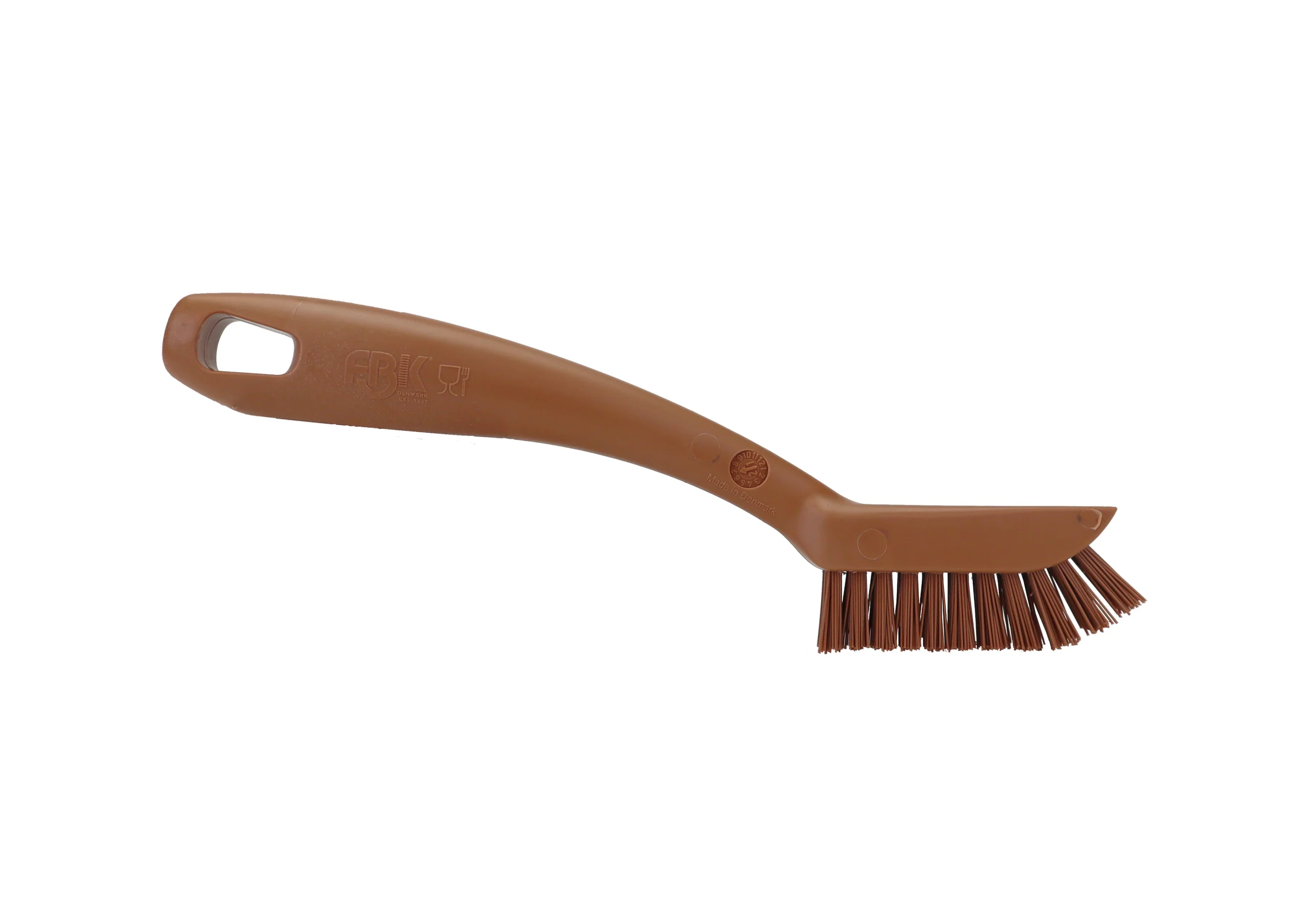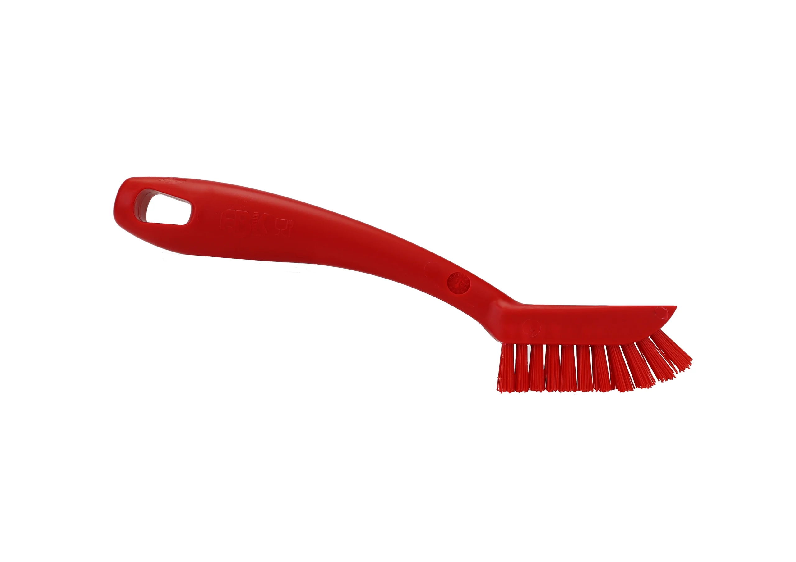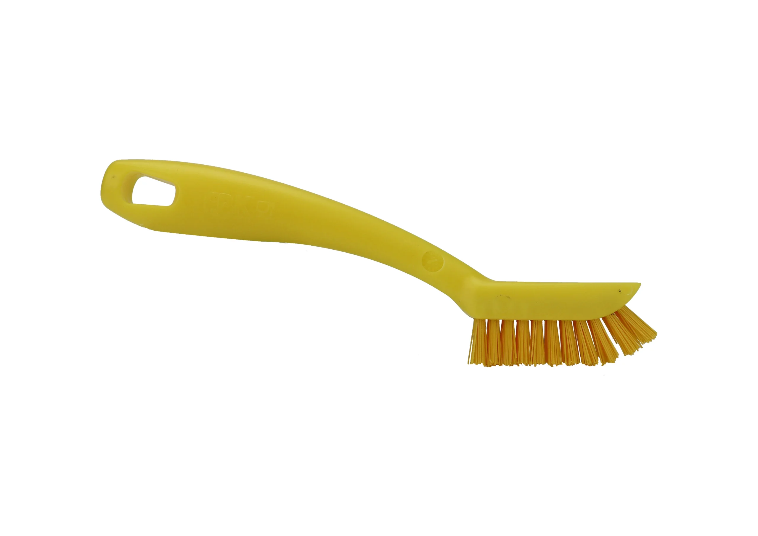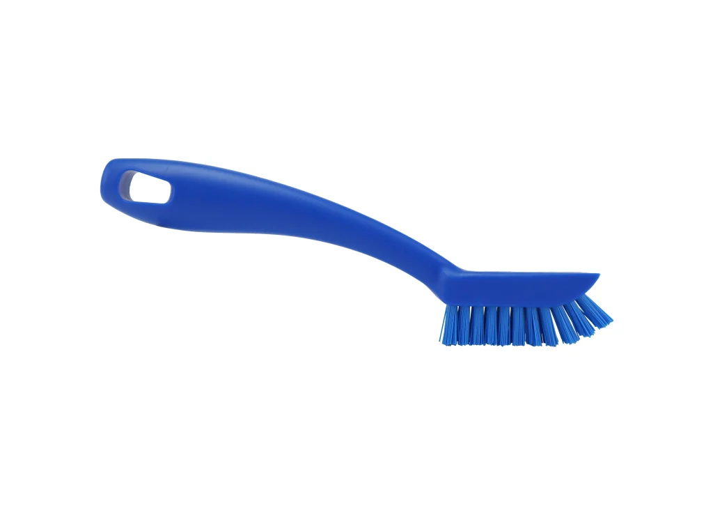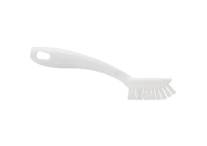 Cepillo de mano para limpieza de maquinaria, con cerdas duras de PBT 0.50 y mango de polipropileno. Tamaño compacto, rigidez y maniobrabilidad especializada en la limpieza de residuos difíciles en todo tipo de espacios técnicos sin comprometer durabilidad. Uso recomendado hasta 80 °C. Esterilizable a 134 °C.
