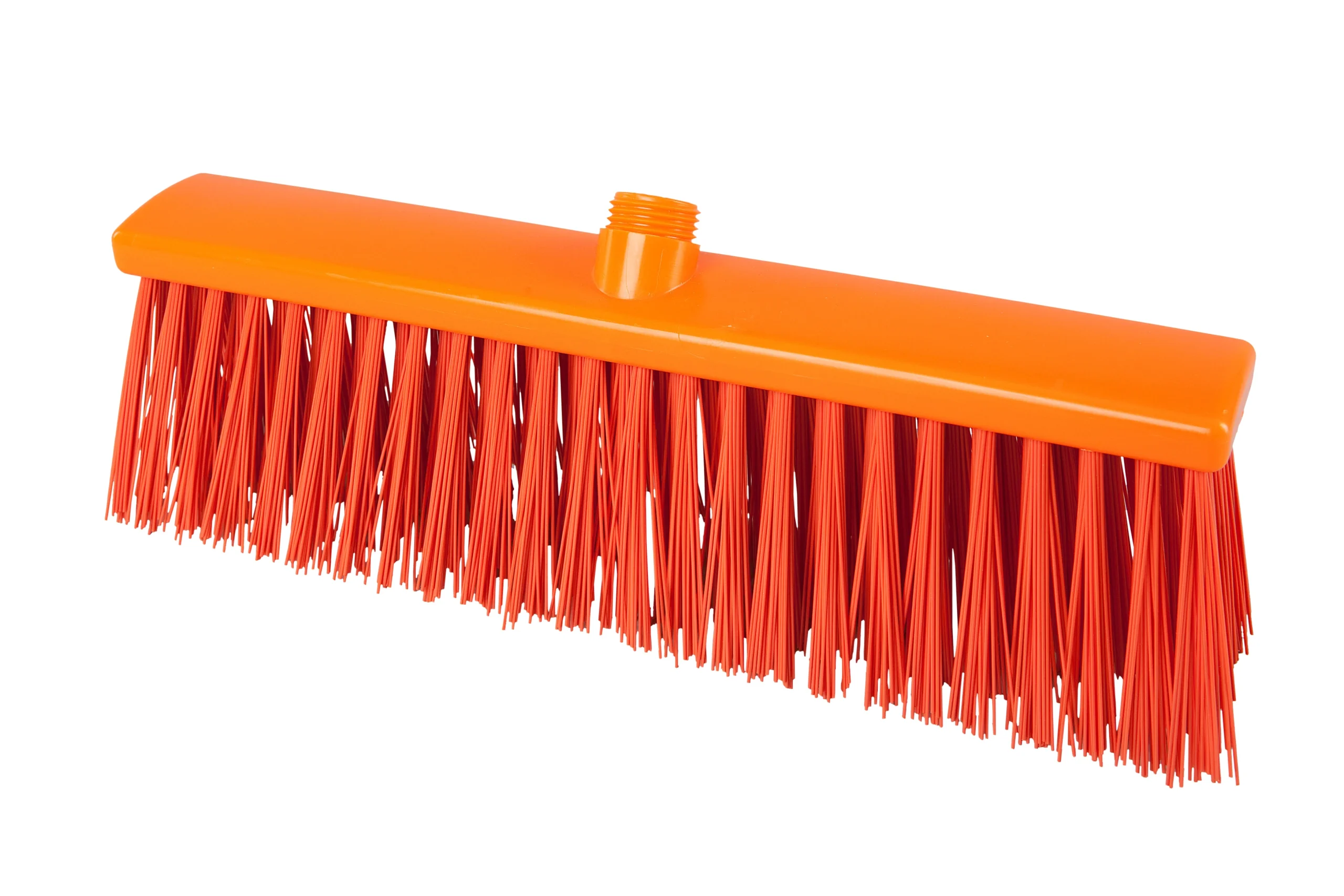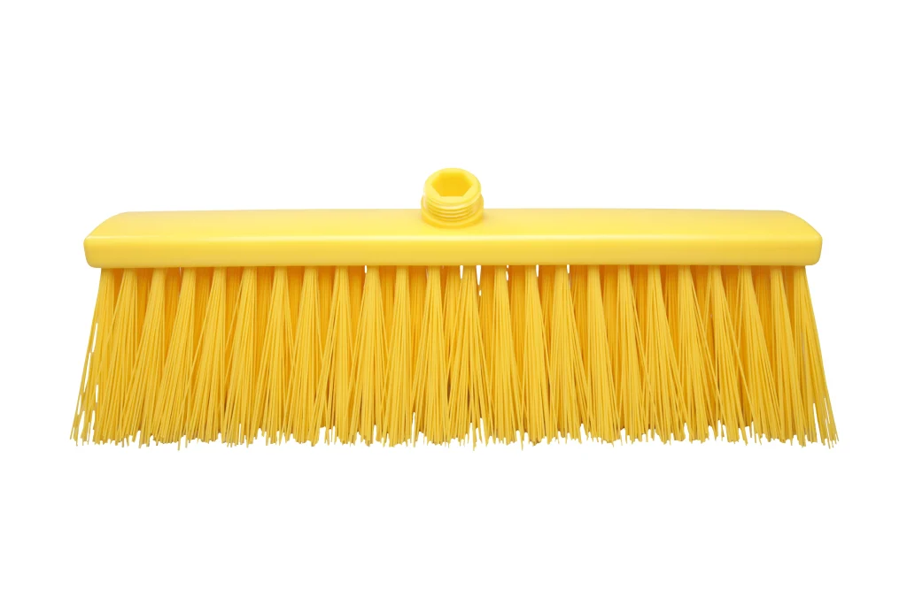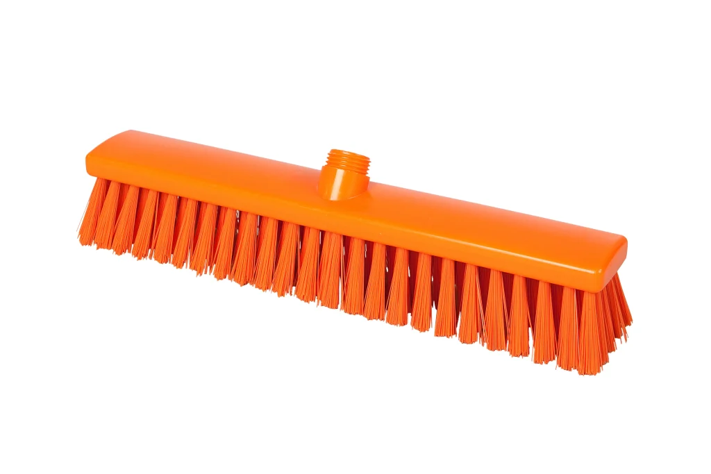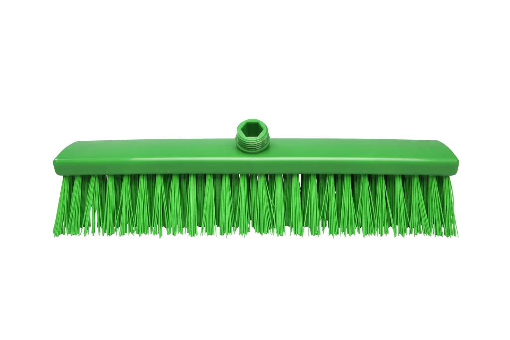Las escobas rígidas con filamentos extralargos de la línea Clásica cuentan con cuerpo de plástico resistente y cerdas de poliéster PBT de 1,00 mm de diámetro y 110 mm de largo, que garantizan una alta dureza para limpiezas exigentes. Soportan temperaturas de uso hasta 80°C y máximas de 134°C. Equipadas con rosca externa compatible con accesorios FBK (rosca no incluida), están diseñadas para limpieza seca y húmeda de suelos, especialmente en exteriores o para trabajos de limpieza dura, ofreciendo durabilidad y rendimiento superior.