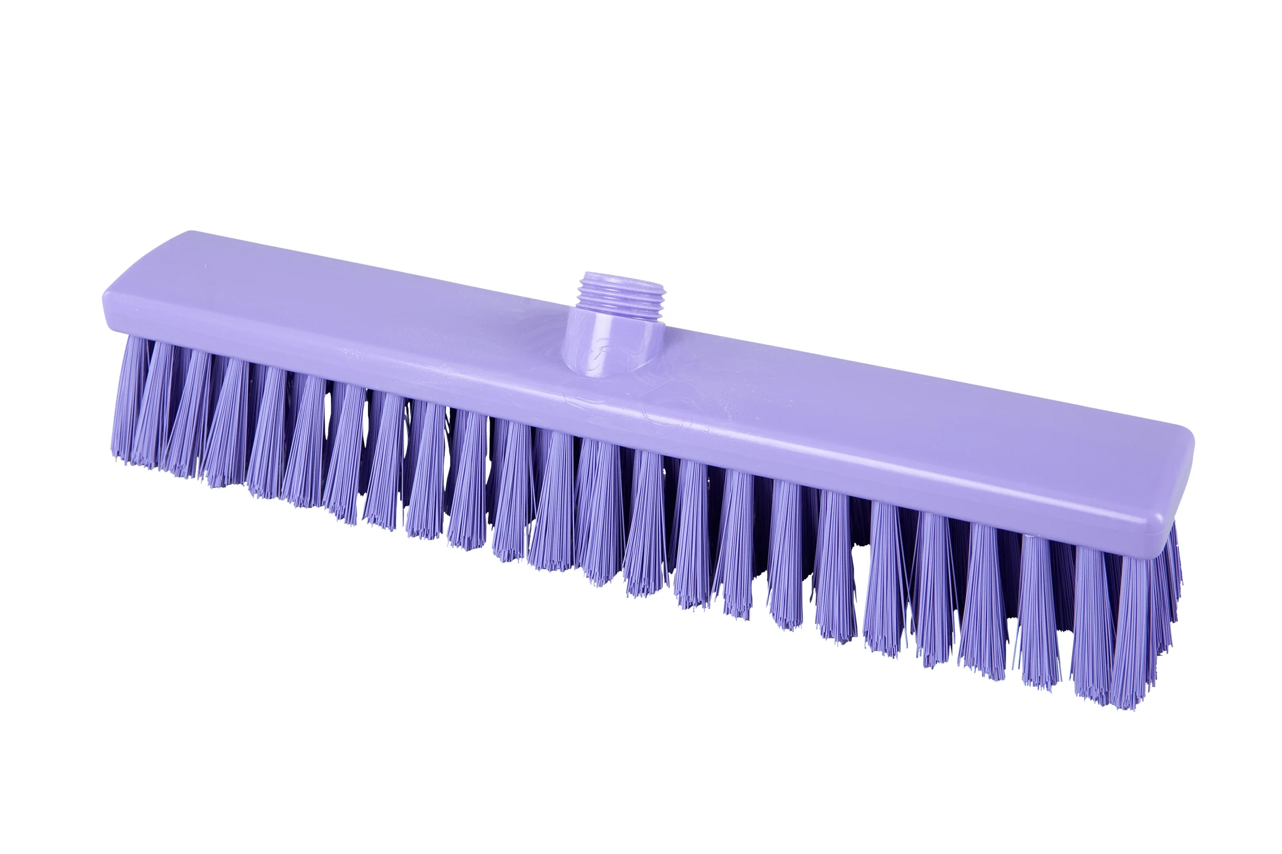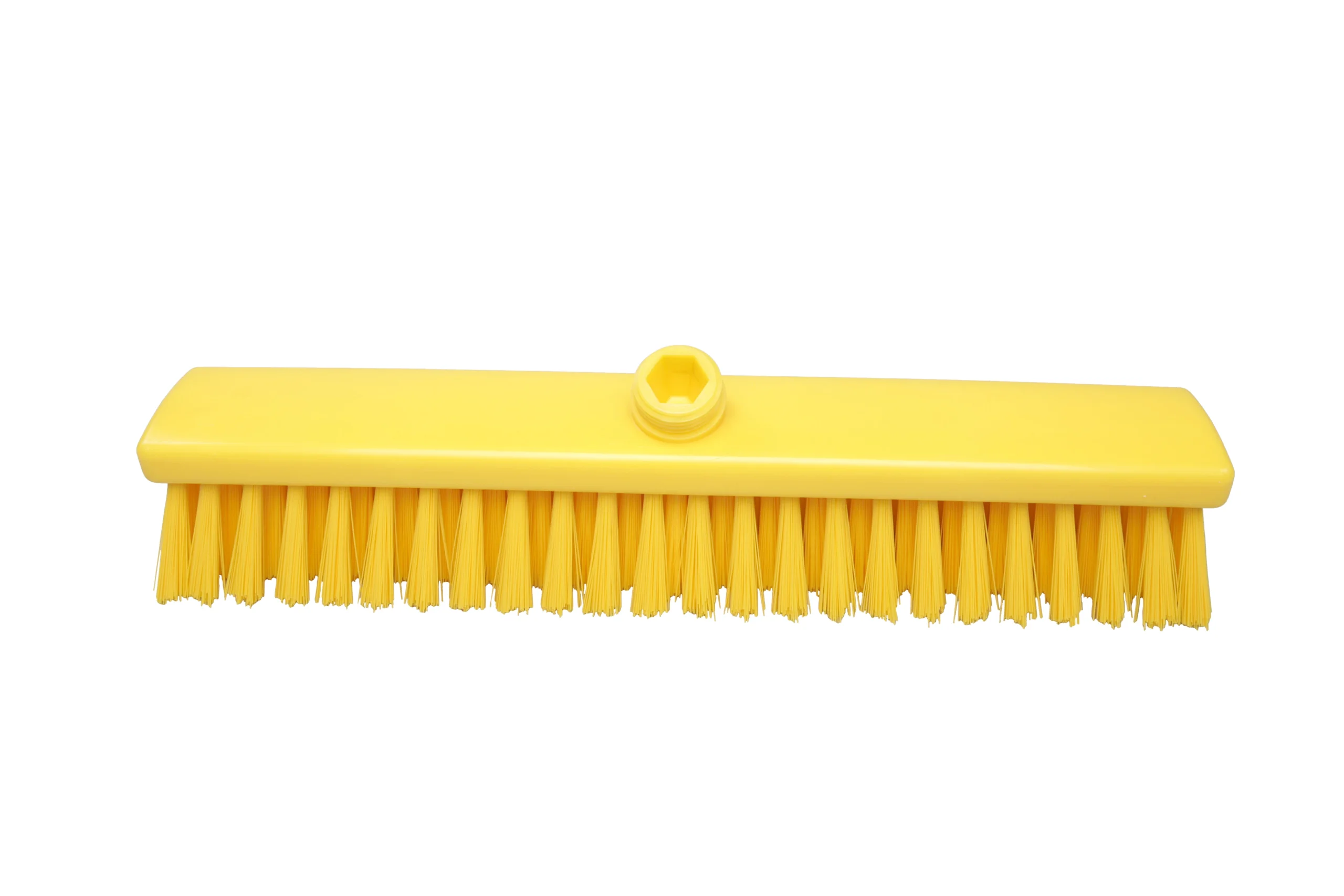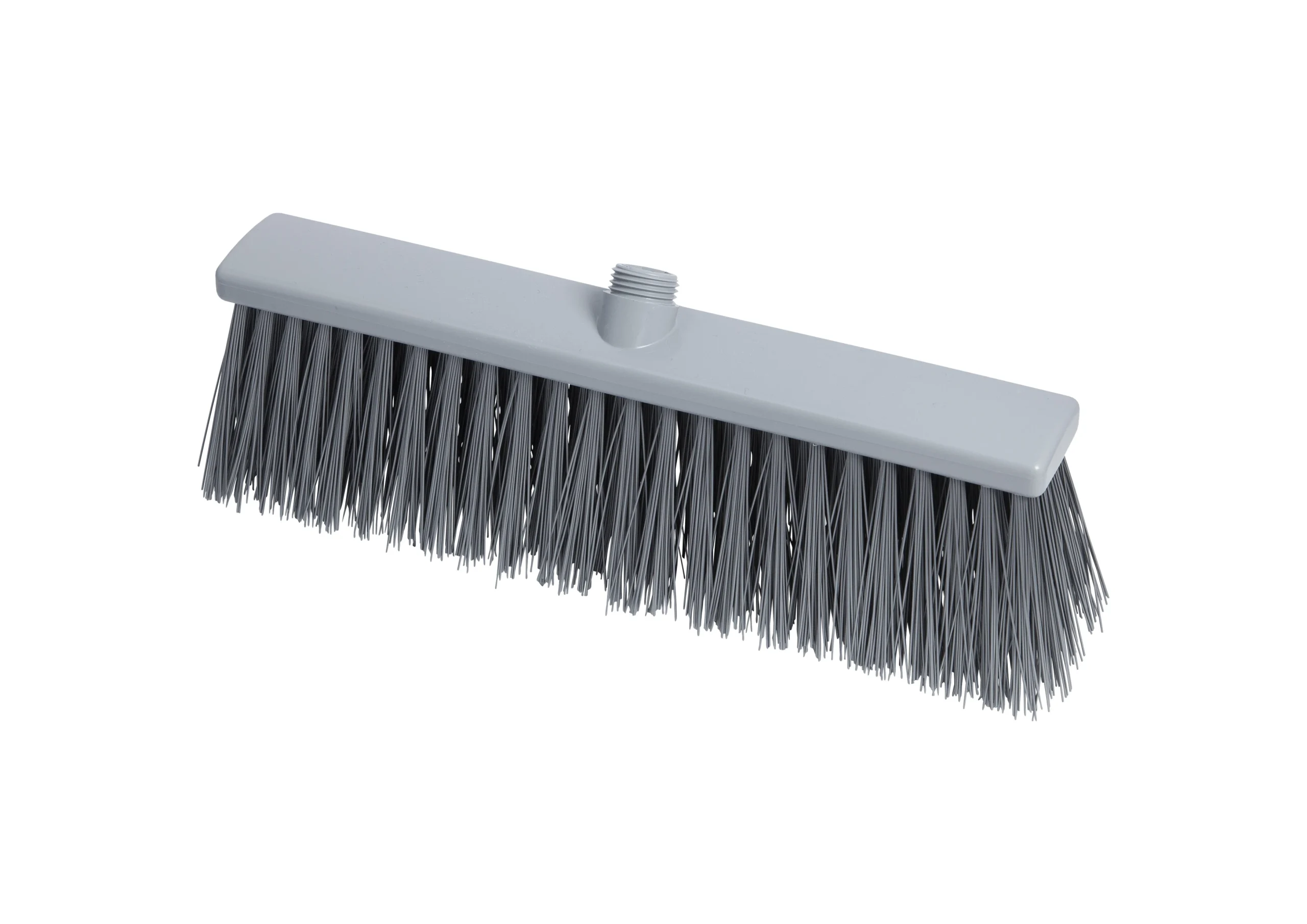 Las escobas rígidas con filamentos extralargos de la línea Clásica cuentan con cuerpo de plástico resistente y cerdas de poliéster PBT de 1,00 mm de diámetro y 110 mm de largo, que garantizan una alta dureza para limpiezas exigentes. Soportan temperaturas de uso hasta 80°C y máximas de 134°C. Equipadas con rosca externa compatible con accesorios FBK (rosca no incluida), están diseñadas para limpieza seca y húmeda de suelos, especialmente en exteriores o para trabajos de limpieza dura, ofreciendo durabilidad y rendimiento superior.