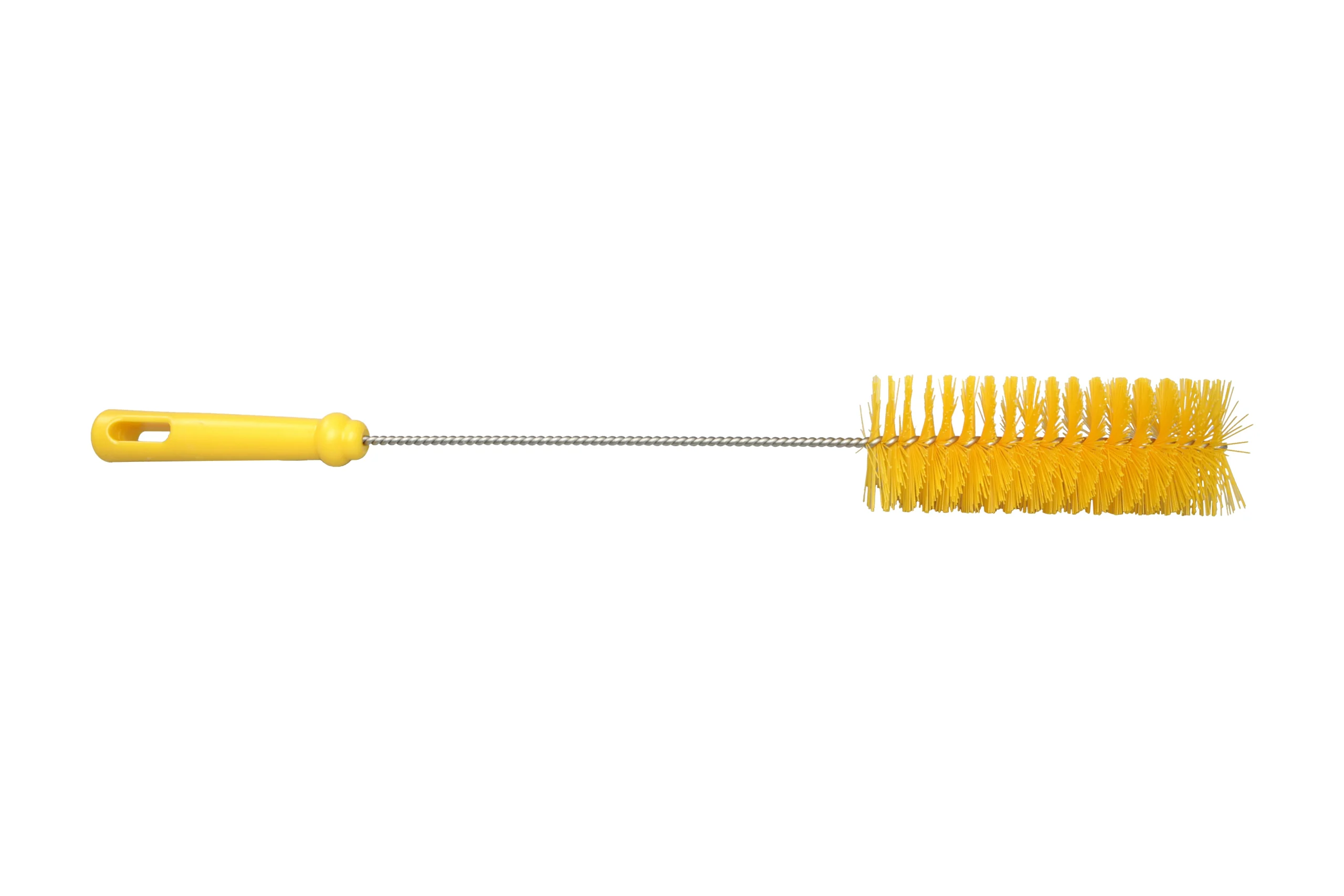Cepillo de mano con mango largo y filamentos de poliéster PBT de dureza media, con radio de 60 mm. Diseñado para tuberías grandes, permite acceder con facilidad para remover residuos y mantener la higiene en espacios estrechos y exigentes.