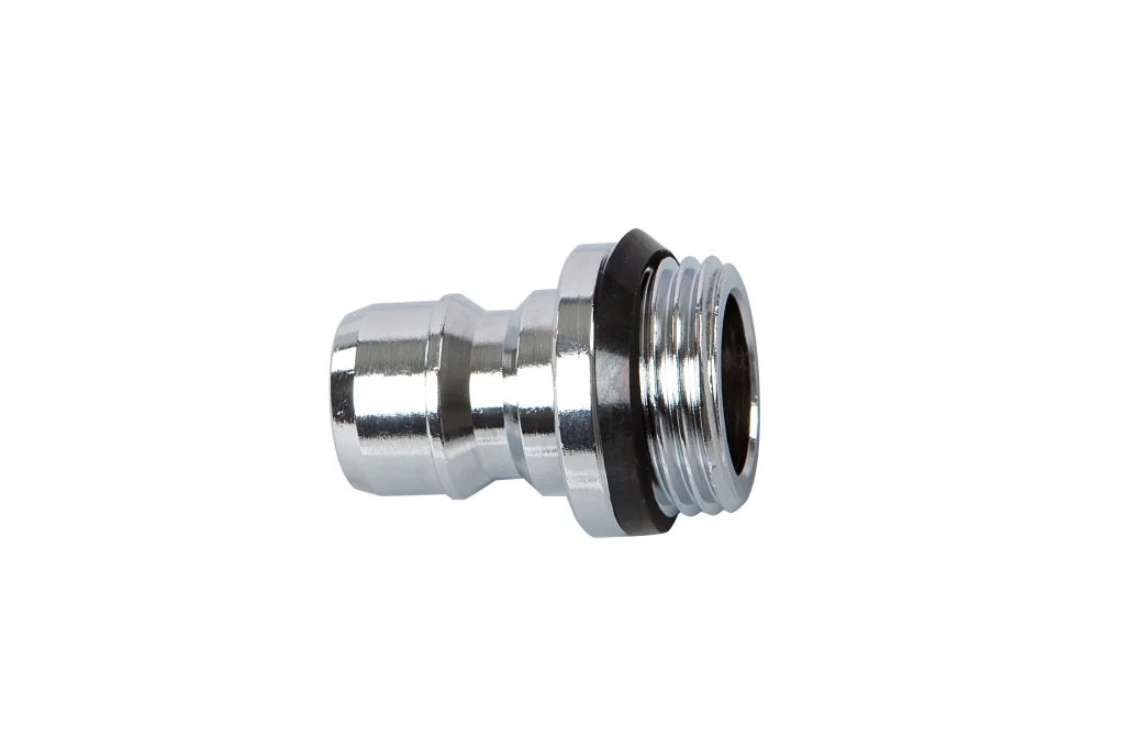 Acople metálico de ½” para pistola de agua. Permite conectarla a otros componentes.