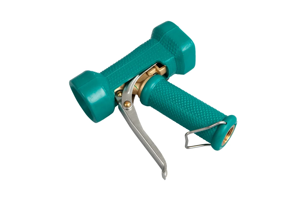 Pistola de agua industrial disponible en múltiples colores, con cuerpo de latón, ideal para limpieza húmeda en procesos exigentes. Su diseño compacto y liviano mejora la maniobrabilidad, mientras la boquilla plana FBK entrega un chorro uniforme, sin goteo y regulable. Altamente duradera, resistente a 24 bar y 95 °C, con uso eficiente del agua. Compatible con acople de ½”.
