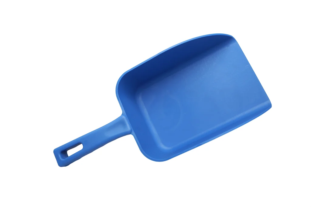 Poruña de una sola pieza fabricada en polipropileno resistente, liviano e higiénico. Diseño ergonómico con mango corto que incluye ranura para enganchar en balde, facilitando su almacenamiento. Tiene bordes laterales altos para una manipulación segura y eficiente de materiales sólidos o líquidos en procesos industriales. Soporta temperaturas de hasta 100 °C en uso y 120 °C para esterilización.