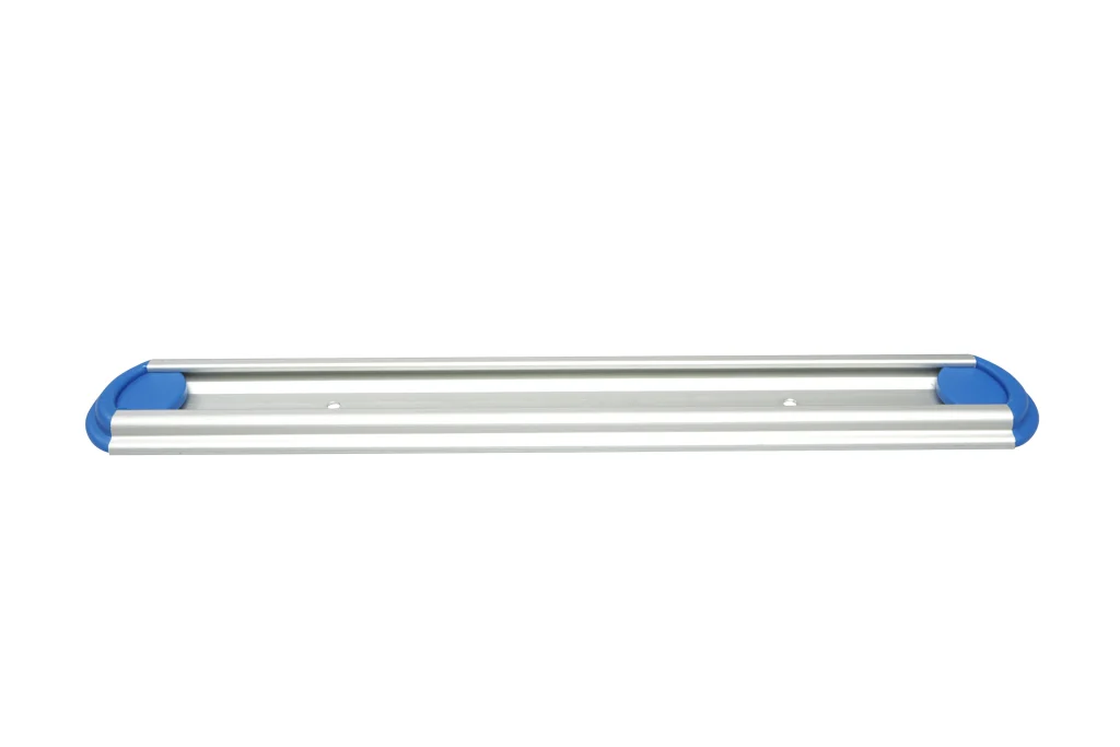 Riel de aluminio resistente y ligero, compatible con múltiples complementos que permiten colgar mangos, cepillos, tarjetas y otros artículos. Cuenta con topes laterales de colores que aseguran la fijación y evitan deslizamientos. Ideal para organizar y mantener espacios de trabajo ordenados y eficientes.